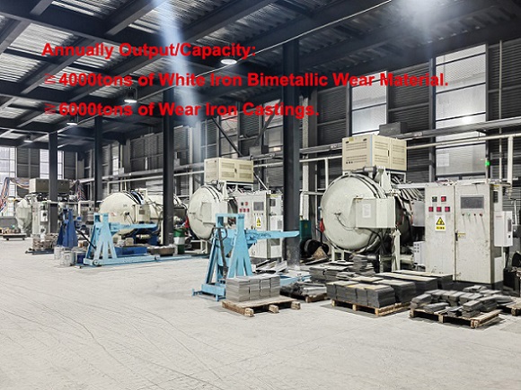 Our annual output of bi-metallic wear blocks/bars/plates is more than 4000tons, capable to produce about 1200 different sizes and shapes; annual output of metal wear-resistant castings is more than 6000 tons.