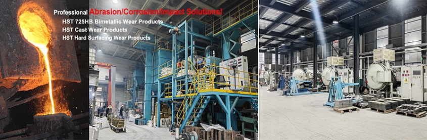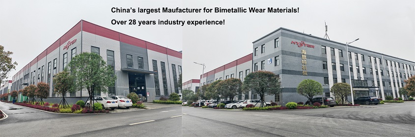 Hunan Hyster Material Technology Co., LTD. was founded in 1995 and located in Changsha city, Hunan province, middle of China, covers more than 8000 square meter production site area. We are a professional manufacturer & exporter of composite Bi-metallic wear blocks/wear plates(White Iron brazed with mild steel, hardness 63HRC/725 BHN), high chromium wear castings, Ni-hard wear Liners/Billets, Chromium carbide overlay wear plates, and other metallic wear castings, mainly serve for industries such as Mining, Quarrying, Material conveying systems, Sugar Cane Milling, Iron Mill/Steel Plant, Cement, Sand, Gravel, Dredging, Crushing etc.